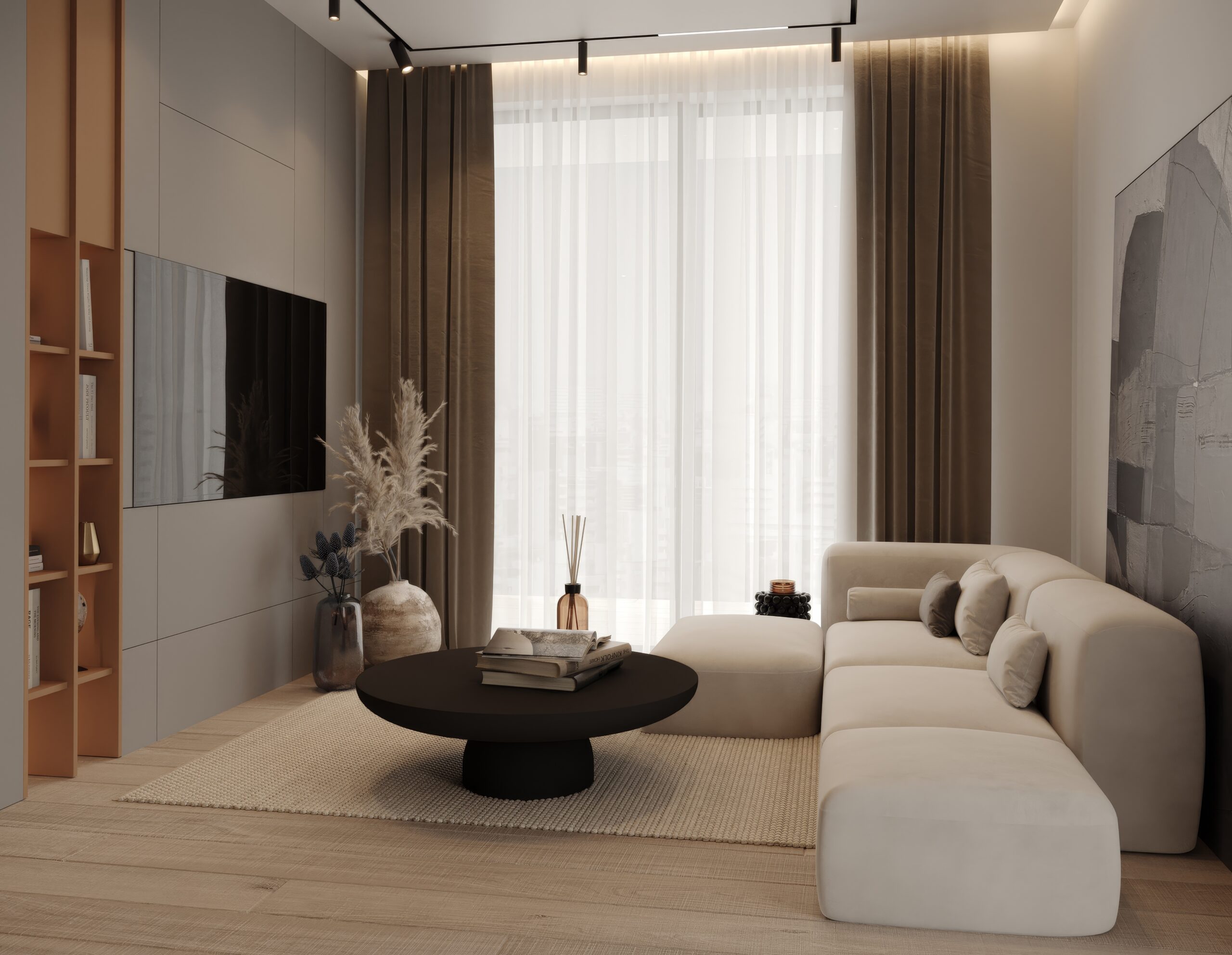 • Mekoća i udobnost: tapacirana stolica u krem nijansi pruža dugotrajnu podršku, a tekstilne zavese u toplim tonovima omekšavaju prirodno svetlo koje dopire kroz prozor.
